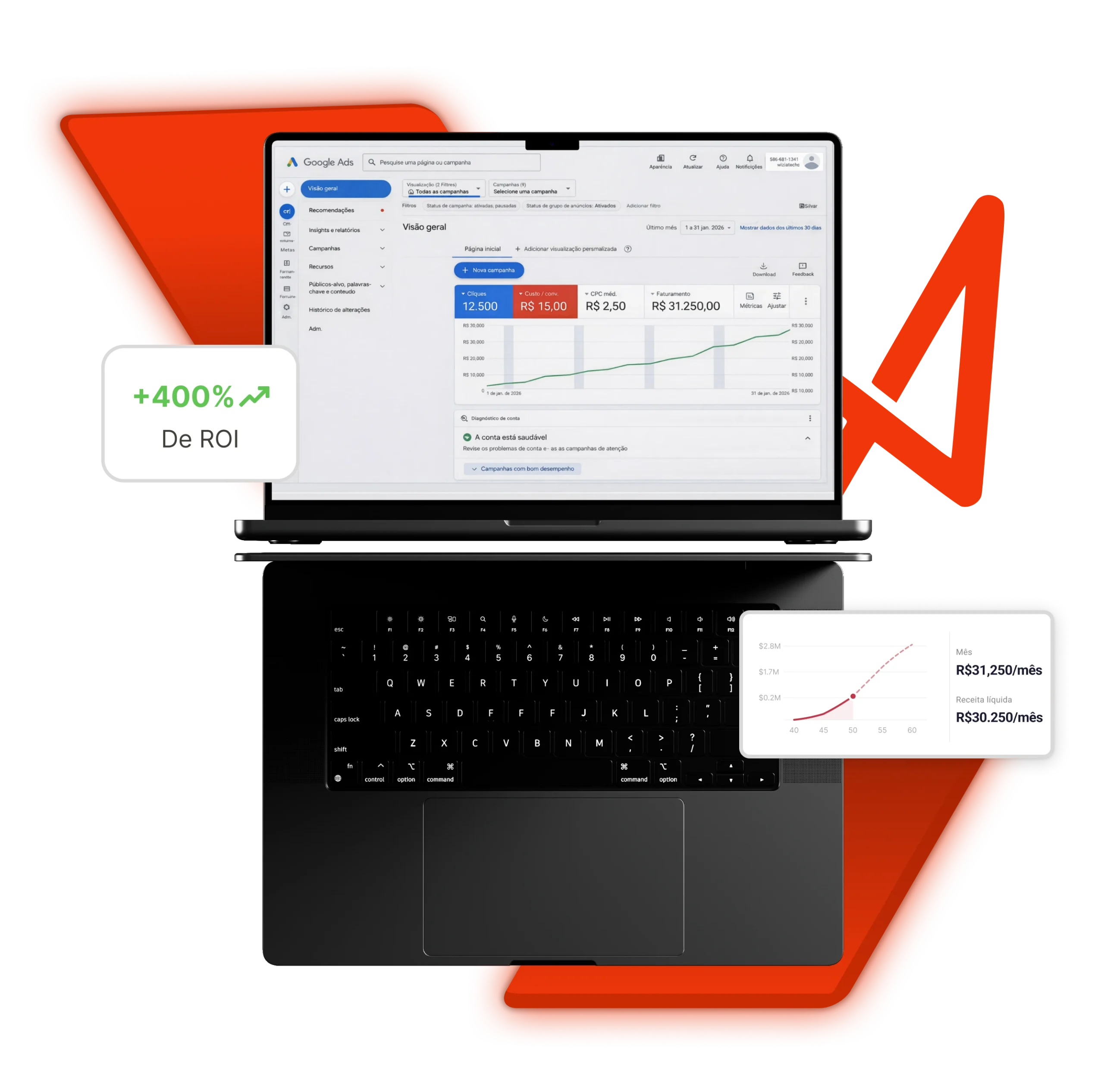 Google Ads: Primeiros resultados em até 48 horas após o lançamento das campanhas. Tráfego qualificado começa a chegar imediatamente.